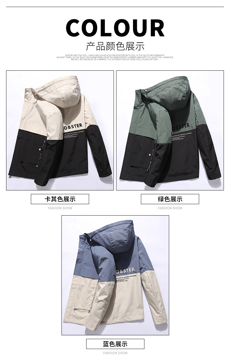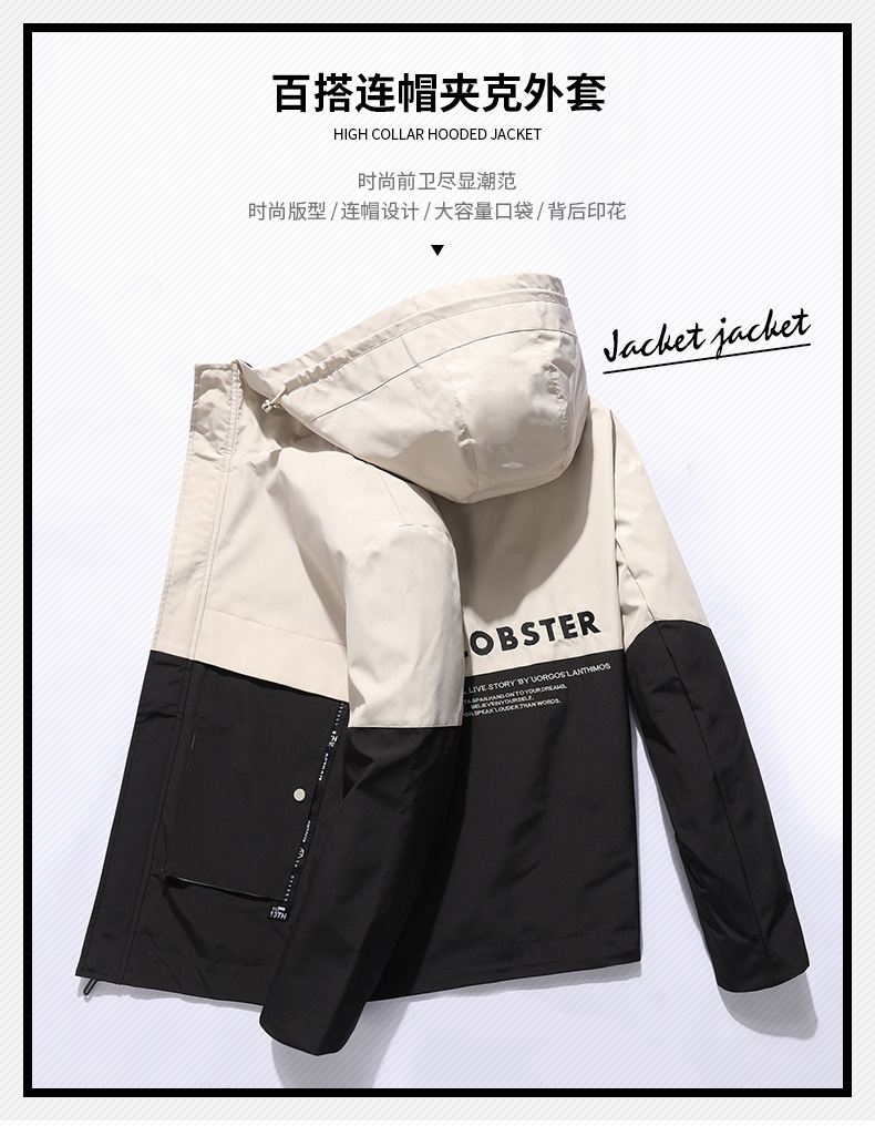 2021秋季新款男士连帽工装夹克青少年拼色中长款宽松外套男装衣服