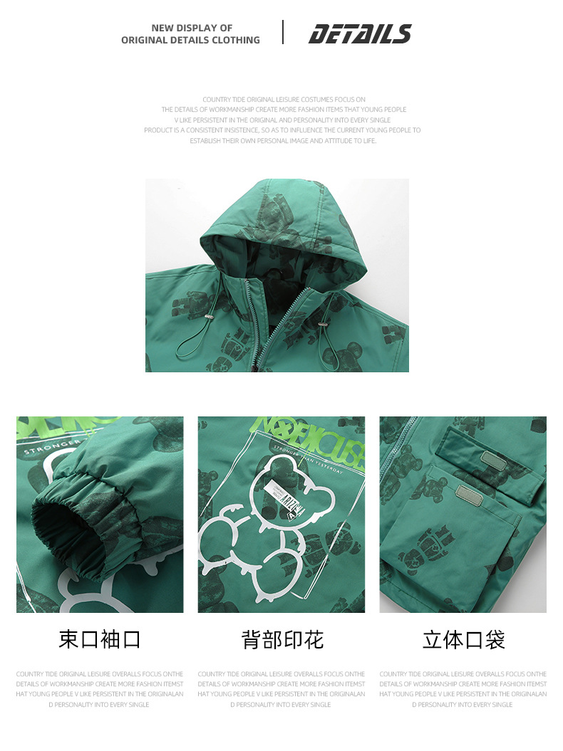 情侣棒球服春秋新款潮牌上衣服男生秋装夹克复古小熊男士工装外套