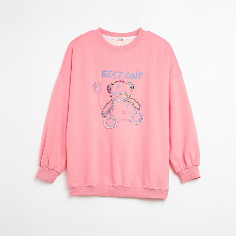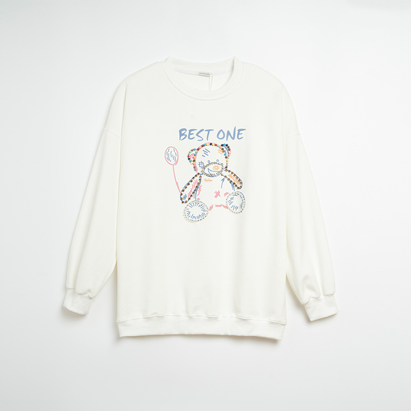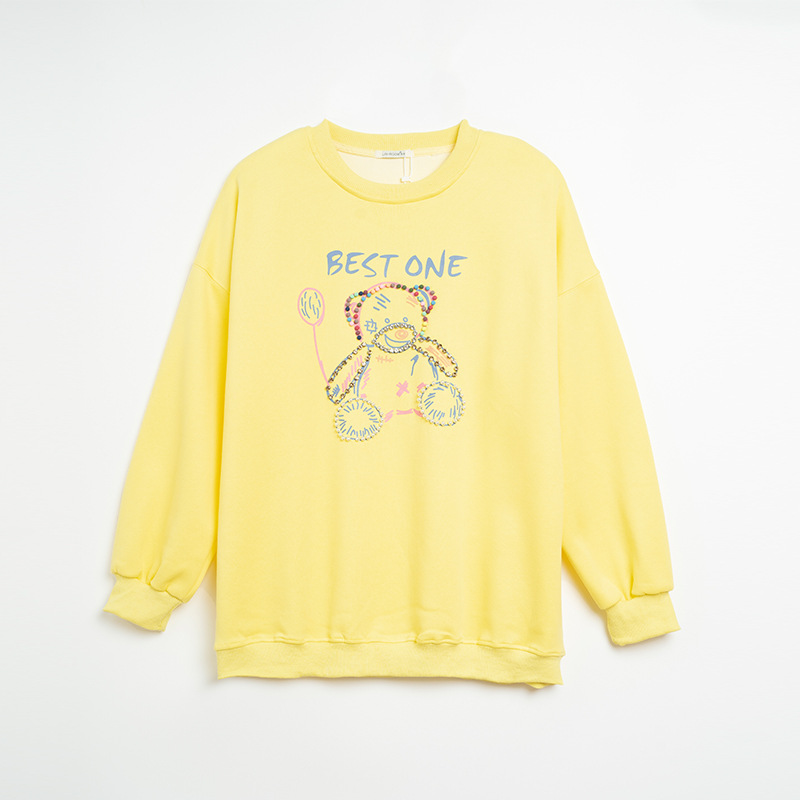 女装2021秋冬新款可爱彩色小熊镶钻卫衣纯色甜美女T恤一件代发