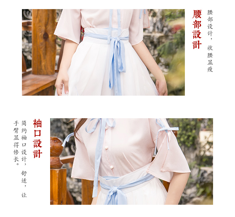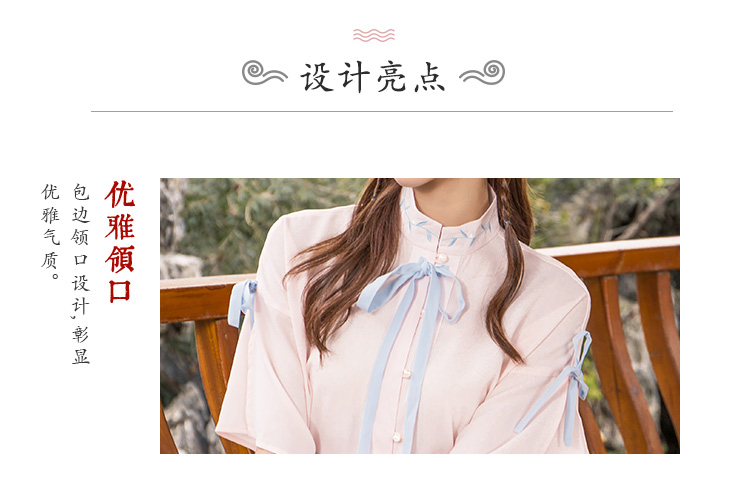 改良汉服汉元素女立领五分喇叭袖 复古上衣大摆绣花长裙