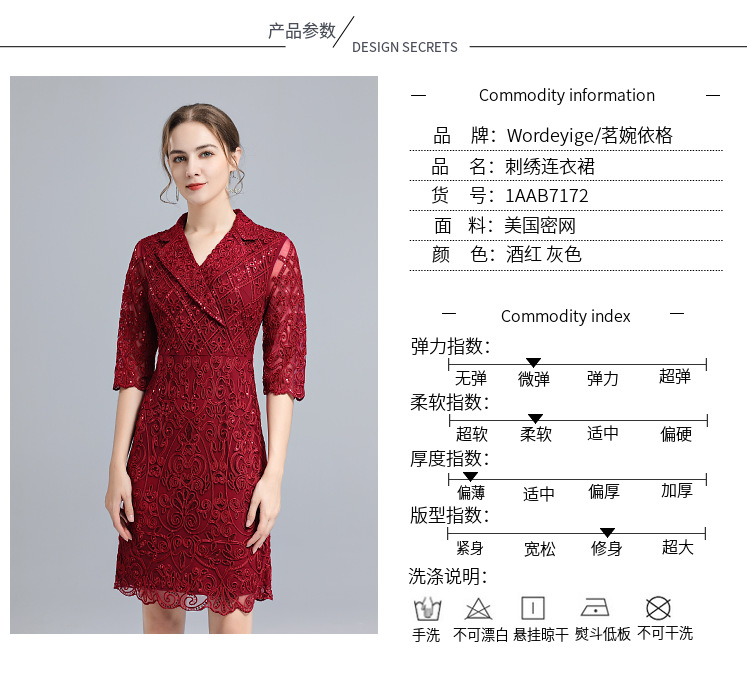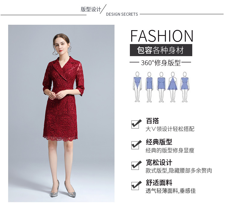 一件代发妈妈秋装连衣裙中袖2020新款盘花轻熟中年人红色裙子批发