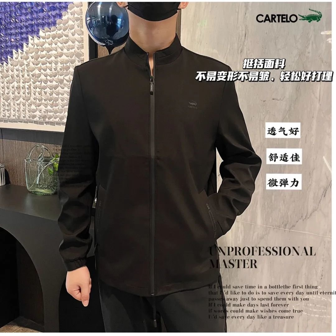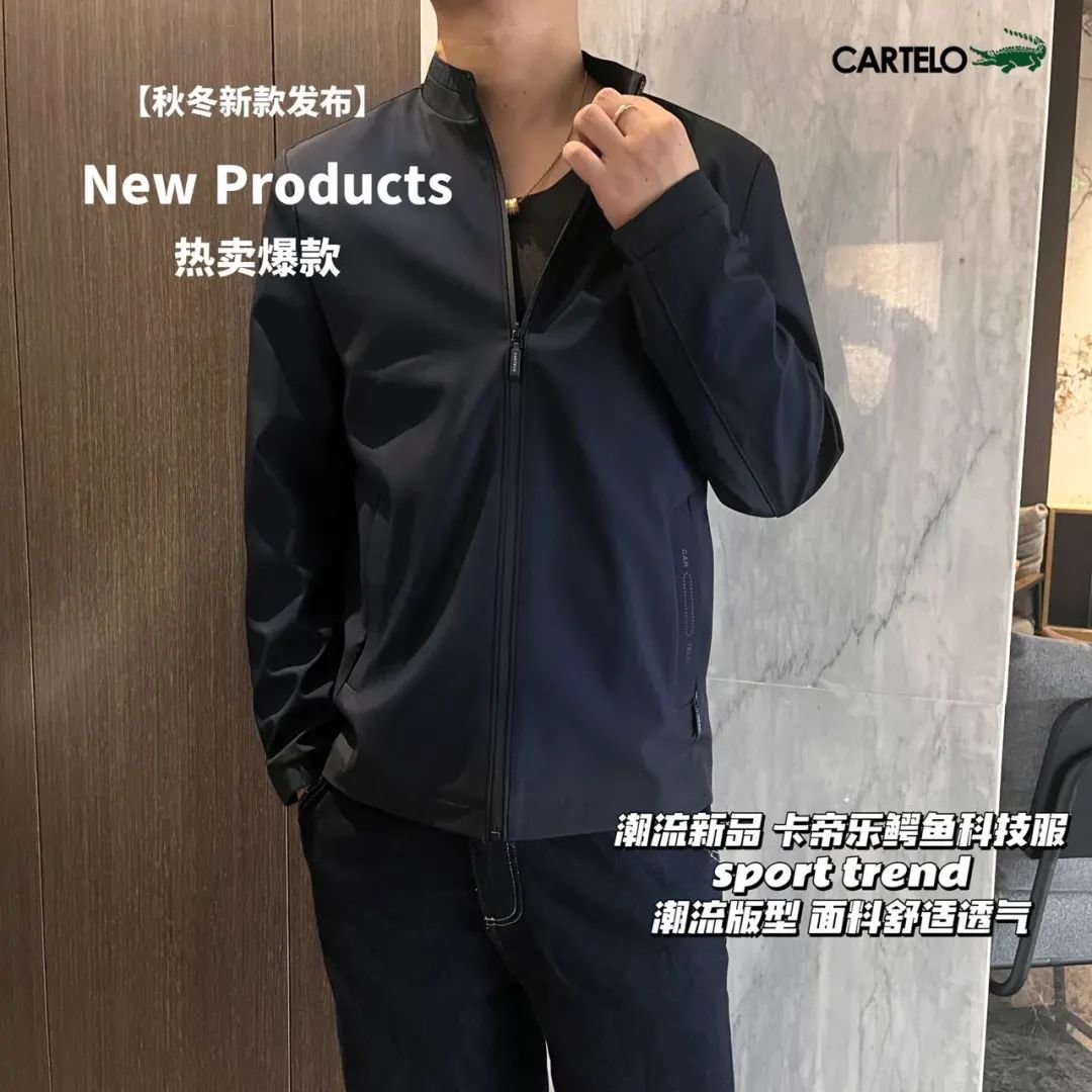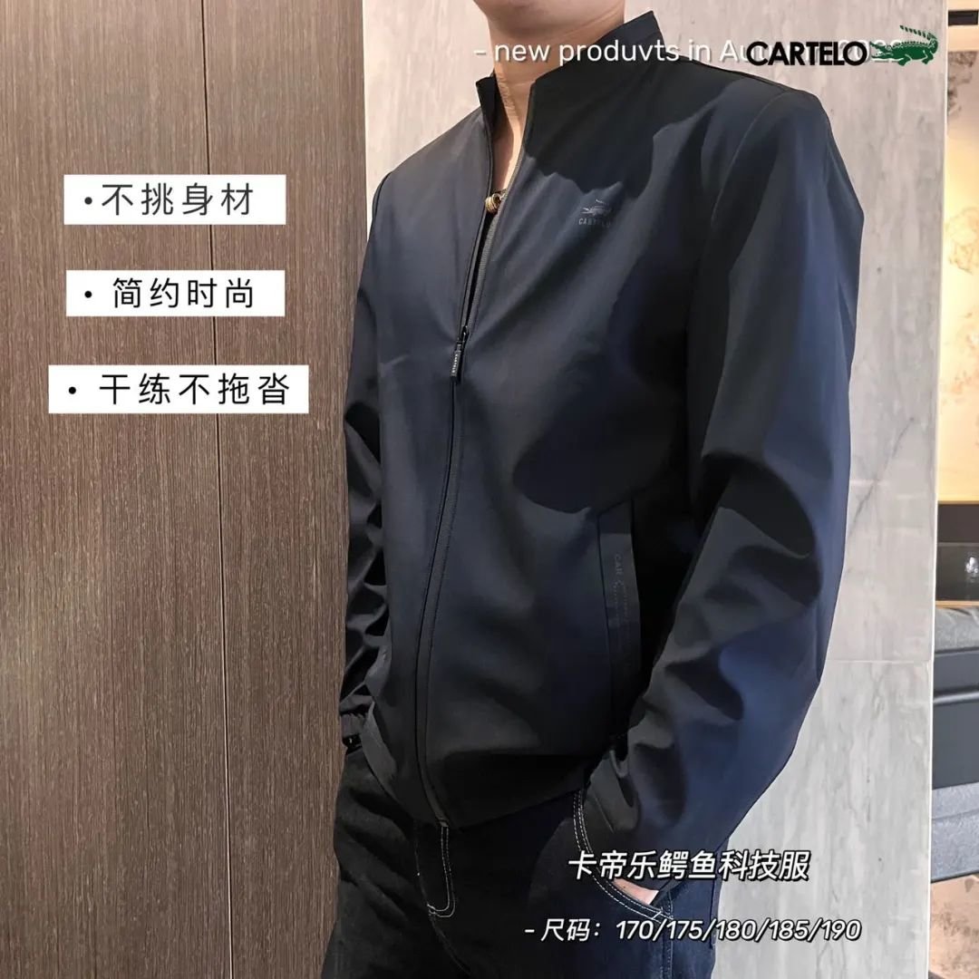 总之要把夹克穿的好看,尽量选择修身的短款,比如下面这件【卡帝乐CARTELO 鳄鱼科技服】。