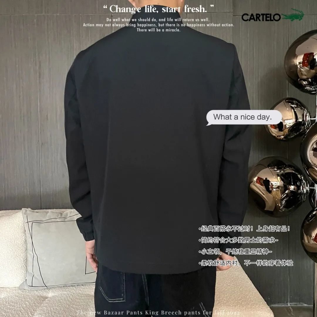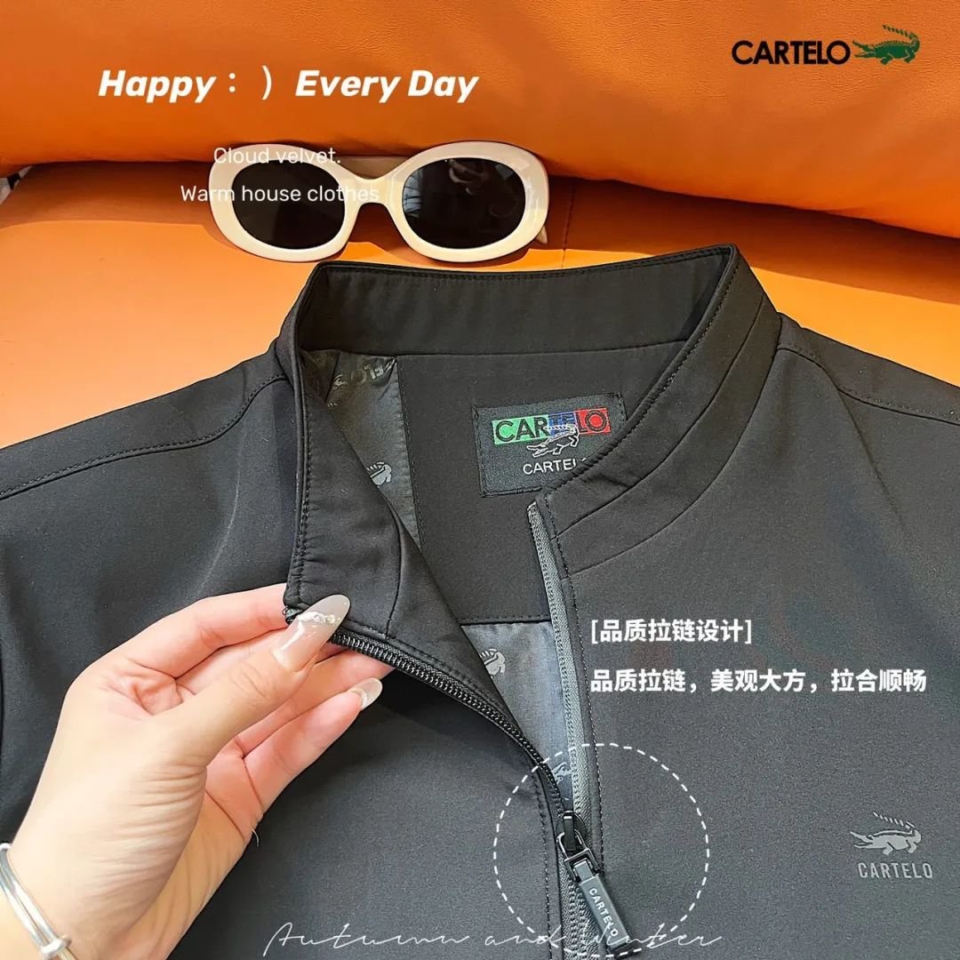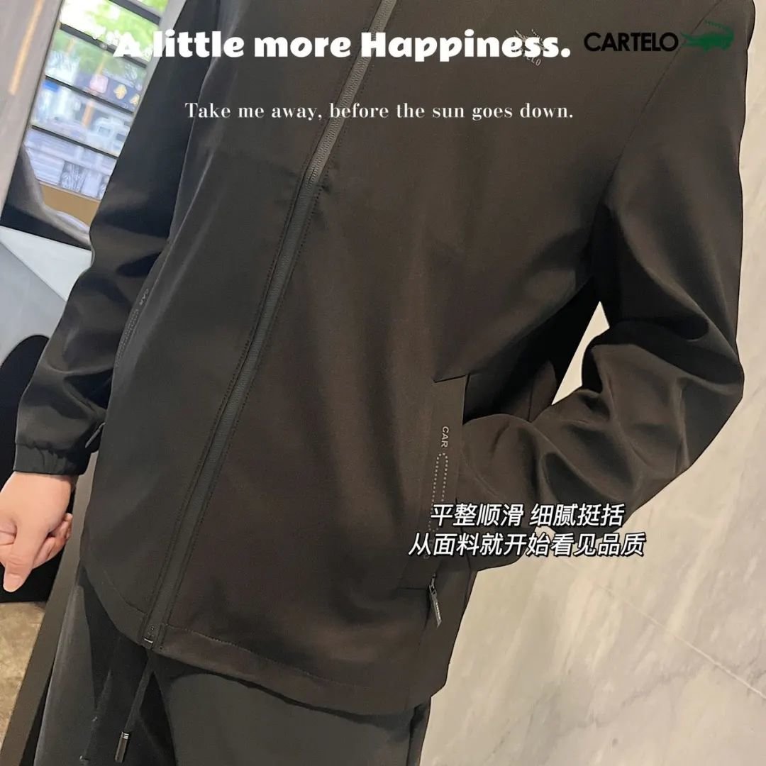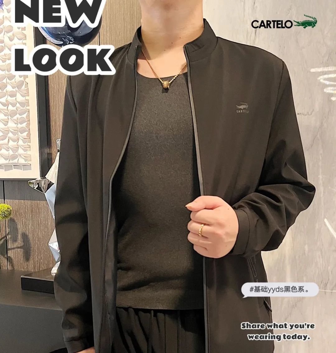 总之要把夹克穿的好看,尽量选择修身的短款,比如下面这件【卡帝乐CARTELO 鳄鱼科技服】。