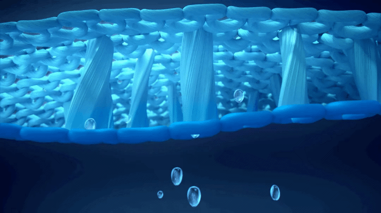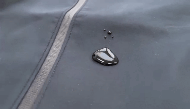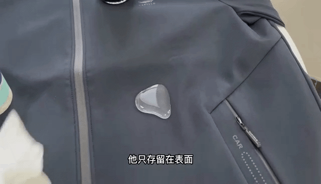 首先就是3防功能,面料经过浸轧、烘干等等工艺便可以实现了面料的“不沾性”,这种材料能够像荷叶一样拥有拒水特性。