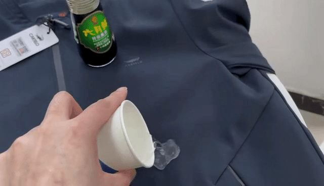 效果到底怎么样?小编给大家演示下:直接一杯水浇上去,即使水流停留时间再长,都完全没有渗透进去。