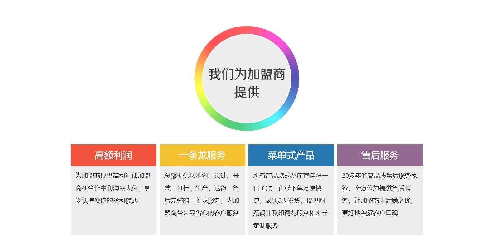 众所周知,创业有风险。但是对风险的规避能力和稳健的业务模式、加盟模式、培训以及营销体系等,可以看出一种加盟企业是否成熟。创业时,因资金准备不足或资金占用因素导致的资金暂时断流,甚至给员工发工资都成问题,遇到这种情况*令创业者被动。爱维服装定制可以很好的规避现金流问题,因为定制服装,会先付部分费用,生产的运作成本由工厂承担,也没有库存和运输风险,更能在售后方面做甩手掌柜,全部都由工厂服务,这对加盟商来说是非常有利的。