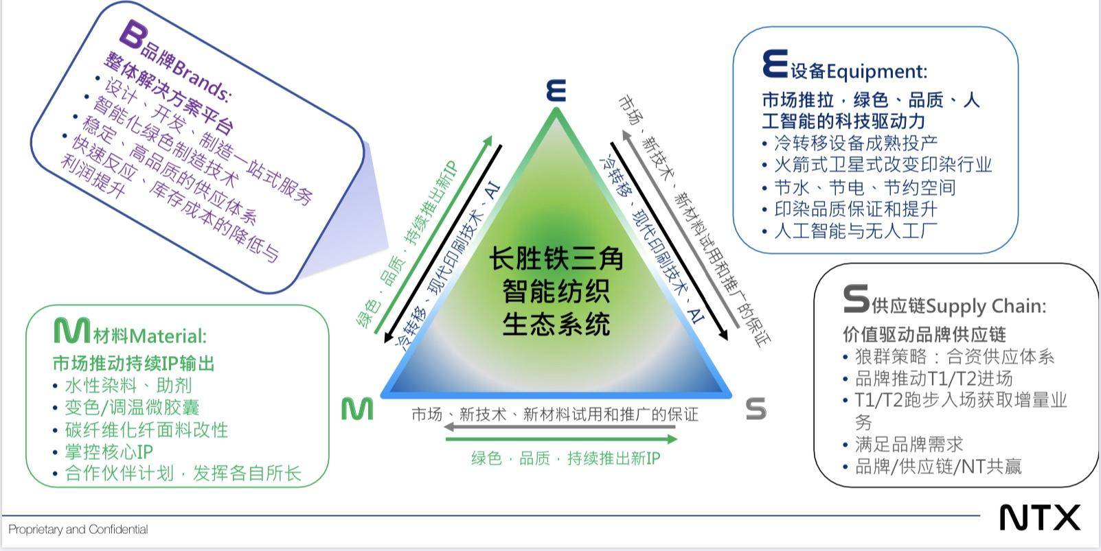长胜科技是一家成立于2000年的纺织科技公司,由钟博文先生创立于上海,其产品线涵盖了智能染印设备、生产材料、供应链服务等内容。早期公司主力在研发能够通过数字化智能精准印染、节能环保的染印设备,自2017年,长胜科技开始通过合资形成搭建服装供应链体系,目前与联泰控股成立的合资供应链,已经覆盖染、印、布匹整理等环节,直接服务于服装品牌企业客户,未来还会将成衣制造环节纳入体系。