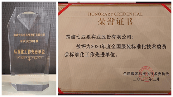 ▲ 七匹狼荣获“茄克同类产品市场综合占有率第一位”